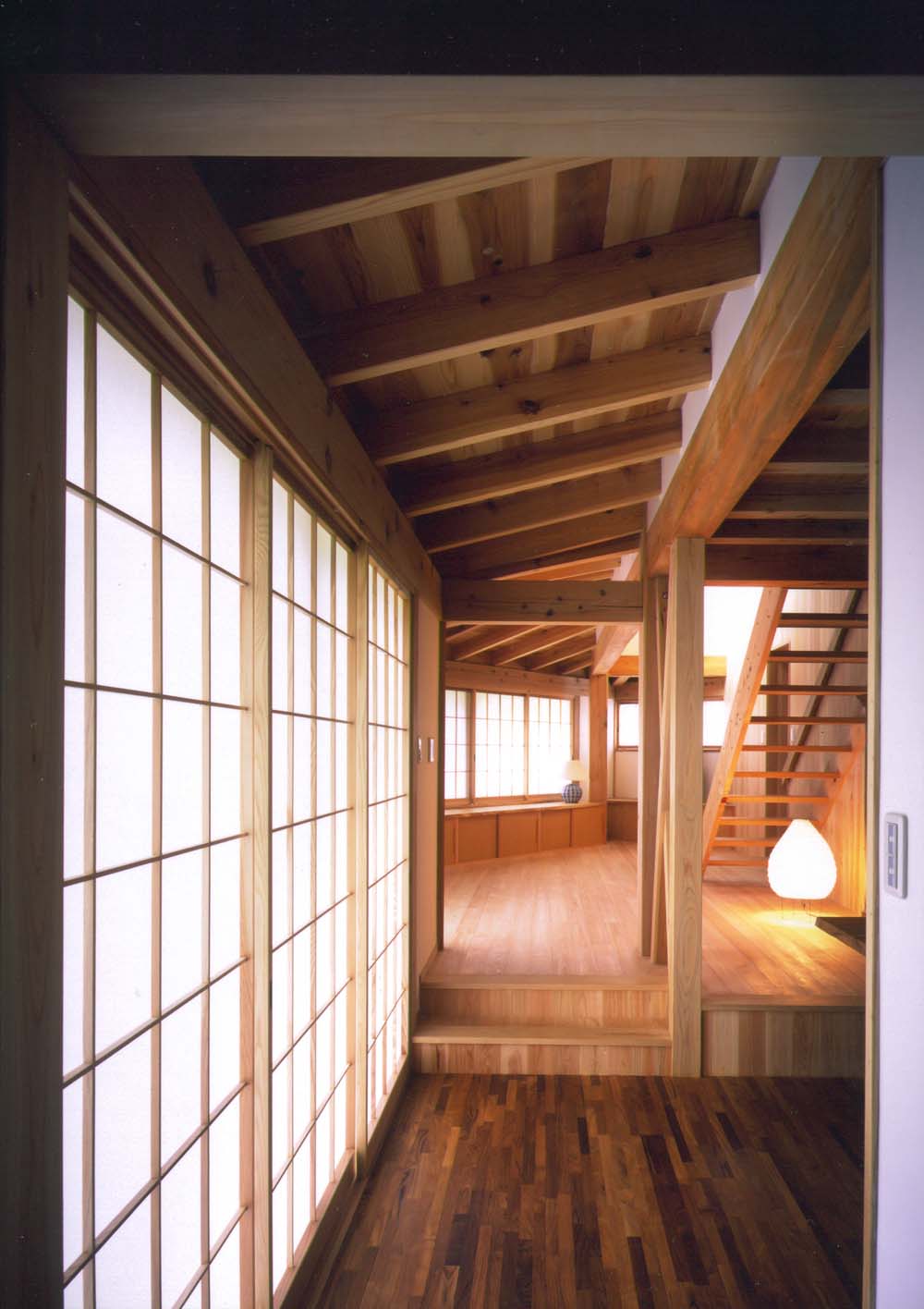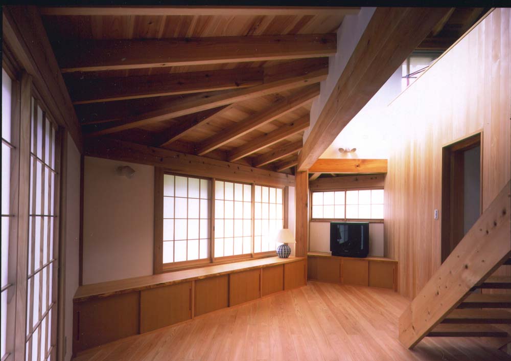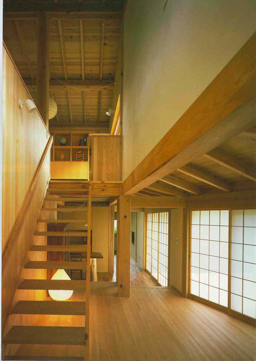 構造体である木は7寸角の柱、8尺を超える松の梁など仕上げに使っている板も含めほとんど国産材を使用しています。内外部の仕上げは左官仕上げ、大工さんも含め手仕事の集積のような建物です。