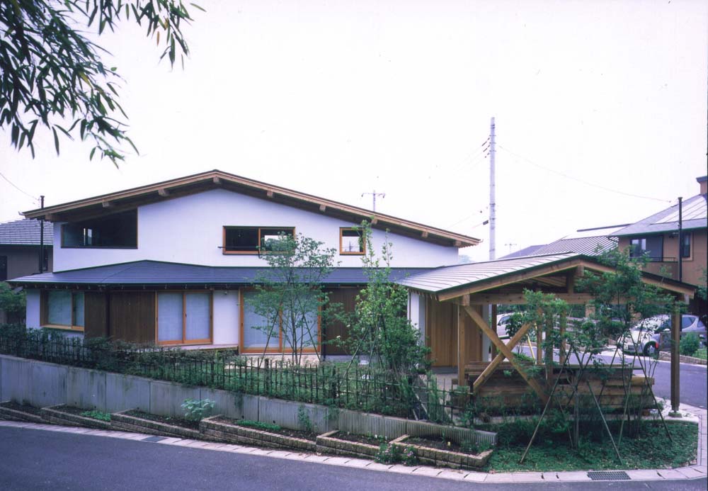 都市整備公団が開発した広大な宅地の一区画が計画地です 。敷地の南には昔ながらの緑地が残り、宅地開発以前の自然を少しですが垣間見ることができます。その緑地に面した部分を三角形の長辺とした不整形の敷地形状をしています。