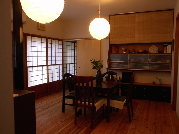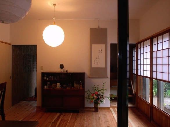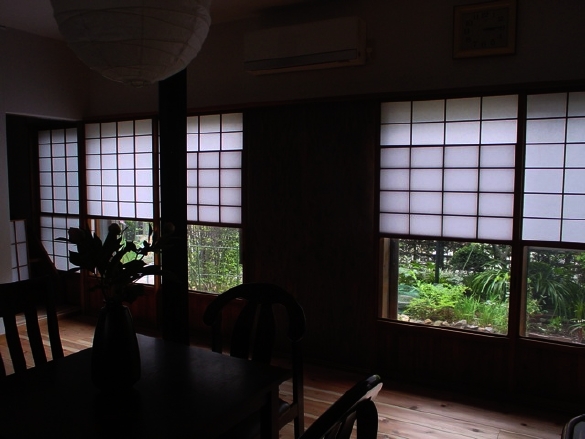 もひとつの写真、鴨居はずっと延びて障子は引き込みになります。